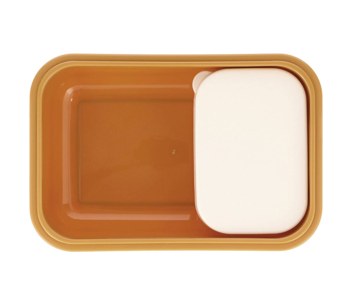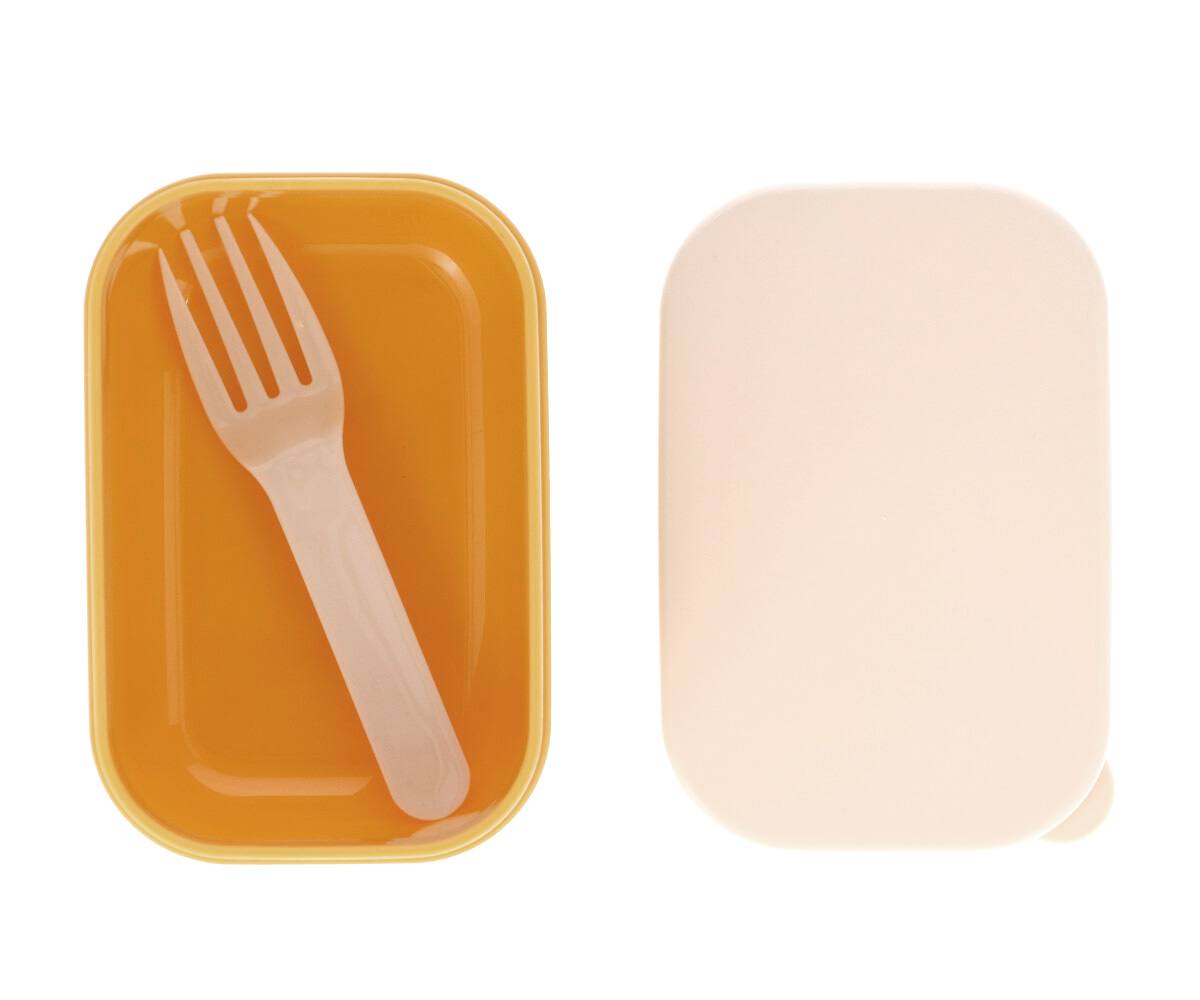 Fiambrera bento para llevar almuerzo al cole y con una cajita interior separadora, con un tenedor, para llevar también la fruta.