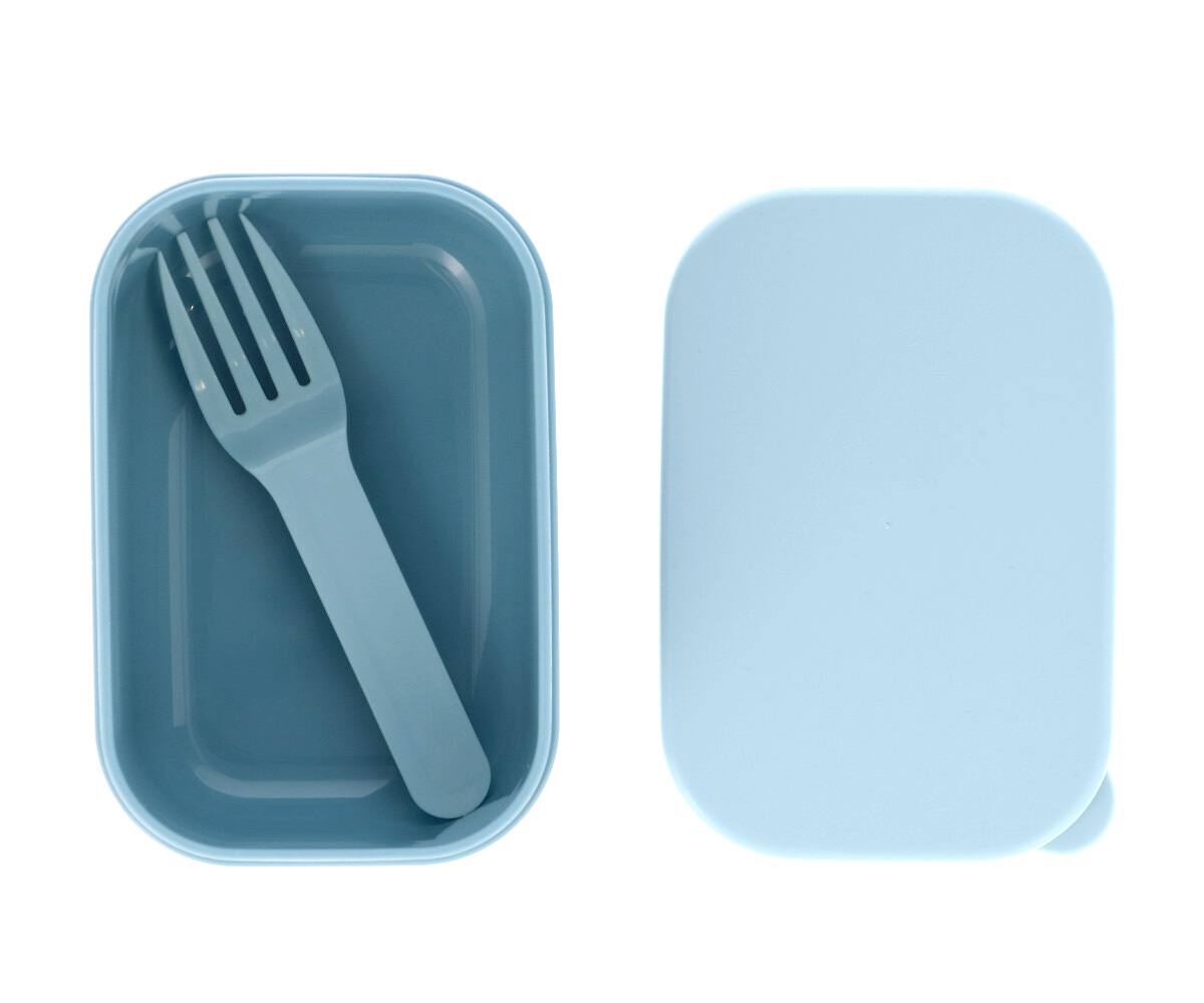 Fiambrera bento para llevar el almuerzo al cole. Lleva una cajita interior separadora, con un tenedor, para llevar también la fruta. Material: Polipropileno, sin BPA ni ftalatos ni PVC. Junta de silicona para sellar Medidas caja bento: 18x12x7 cm