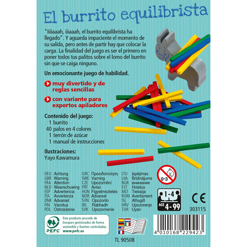 «Iiiiaaah, el burrito equilibrista ha llegado». Y aguarda impaciente el momento de su salida, pero antes de partir hay que colocar la carga. La finalidad del juego es ser el primero en poner todos los palos propios sobre el lomo del burrito sin que se caiga ninguno.