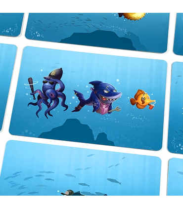 «A la hora del almuerzo el pánico llega al fondo del océano. Los tiburones persiguen a todo pez que se mueva para darse un buen atracón y sólo el pulpo policía puede pararles. Entre tanto descontrol, deberás ser el más rápido en contar los peces que logran escapar de acabar en la panza de estos tiburones hambrientos».