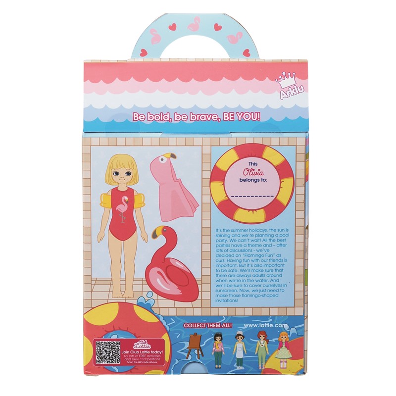 Divertirse con los amigos es importante y también lo es estar seguro. Nos aseguraremos de que siempre haya un adulto cerca cuando estemos en el agua, y también de cubrirnos con protector solar. ¡Ahora, necesitamos hacer esas invitaciones en forma de flamenco!