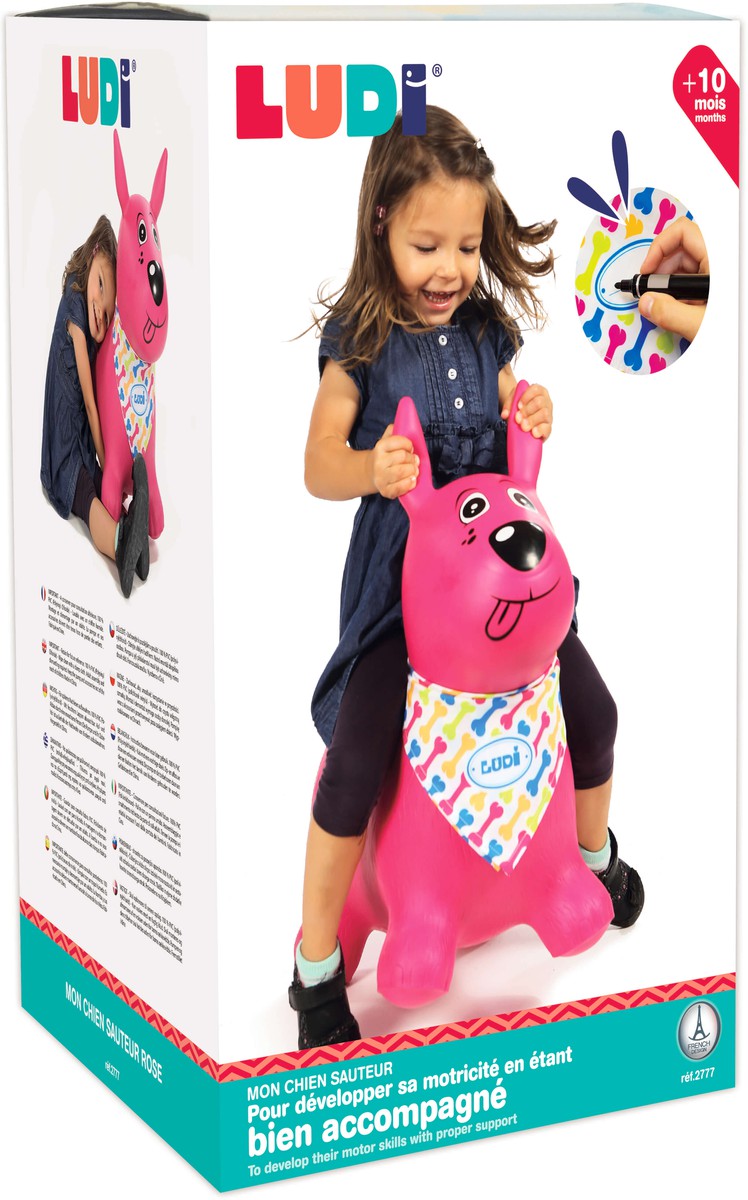 Este perro saltarín se convertirá en el compañero de juego ideal para los pequeños! El niño bota con su pequeño perro! Uso: interior/exterior. Plástico suave y grueso. Gran estabilidad. Bomba incluida.