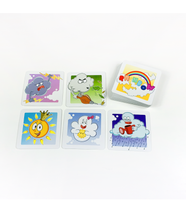 El juego contiene un mazo con cartas de 69×69 mm. Existiendo dos tipos de cartas, las de los siete colores del arcoíris y las de climatología, esto es, sol y lluvia por un lado, y viento, nubes e incluso tormentas por otro.